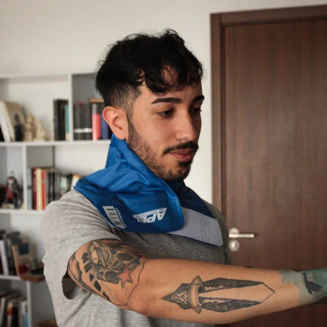 Banda con gel, modelo Cervical, que posee la propiedad de no congelar, de acción gradual para tratamiento mediante crioterapia y termoterapia.