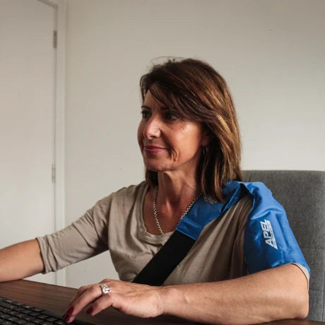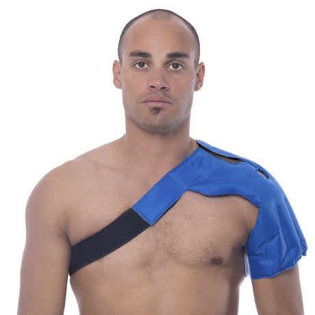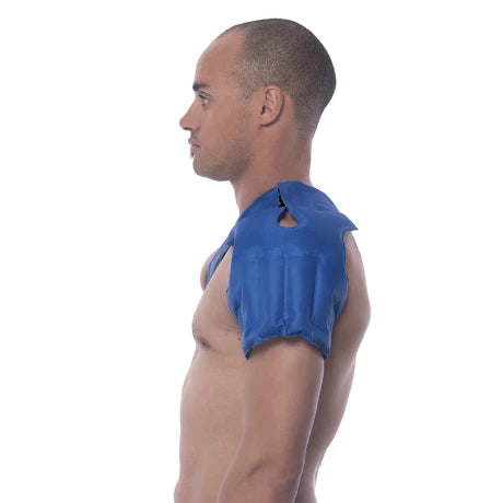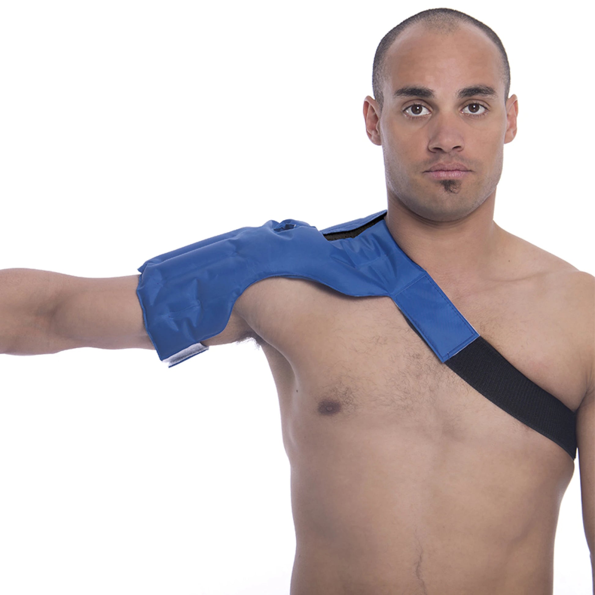 Banda con gel, modelo Hombro, que posee la propiedad de no congelar, de acción gradual para tratamiento mediante crioterapia y termoterapia.