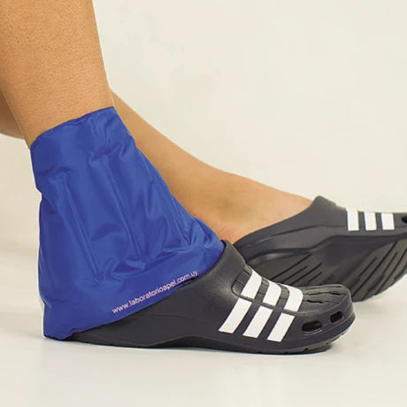 Banda con gel, modelo Tendón de Aquiles, que posee la propiedad de no congelar, de acción gradual para tratamiento mediante crioterapia y termoterapia.