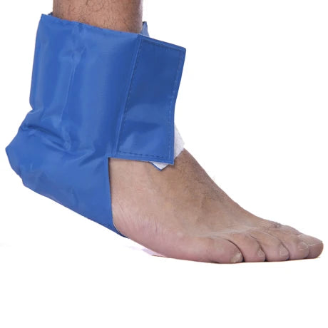 Banda con gel, modelo Tobillo, que posee la propiedad de no congelar, de acción gradual para tratamiento mediante crioterapia y termoterapia.